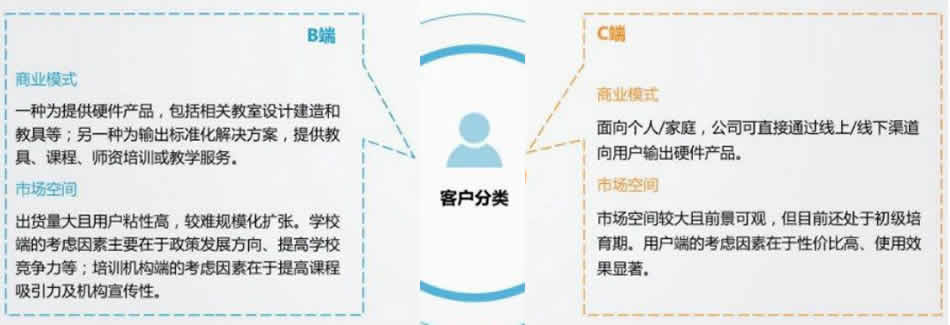 由于教育機(jī)器人涉及教育內(nèi)容的專(zhuān)業(yè)性等眾多因素,因此眾多公司均從針對(duì)學(xué)校及培訓(xùn)機(jī)構(gòu)的產(chǎn)品開(kāi)始做起,然后再逐漸拓展C端市 場(chǎng)。一方面,從B端切入可以讓學(xué);蚺嘤(xùn)機(jī)構(gòu)做背書(shū),幫助企業(yè)提G影響力,積累潛在客戶(hù);另一方面,擴(kuò)展C端業(yè)務(wù)不僅能解決 TO B模式的客單價(jià)彳氐且難規(guī)模擴(kuò)張的問(wèn)題,同時(shí)能通過(guò)B端引流,降低TO C模式的G獲客成本。